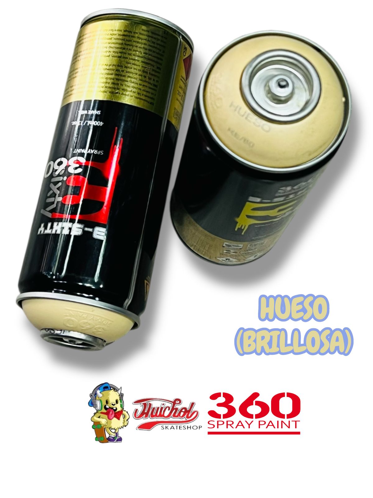 El 360 Spray Paint Color Hueso Brillosa 400ml ofrece un tono neutro claro con efecto brillante que aporta elegancia y versatilidad a proyectos creativos y decorativos.