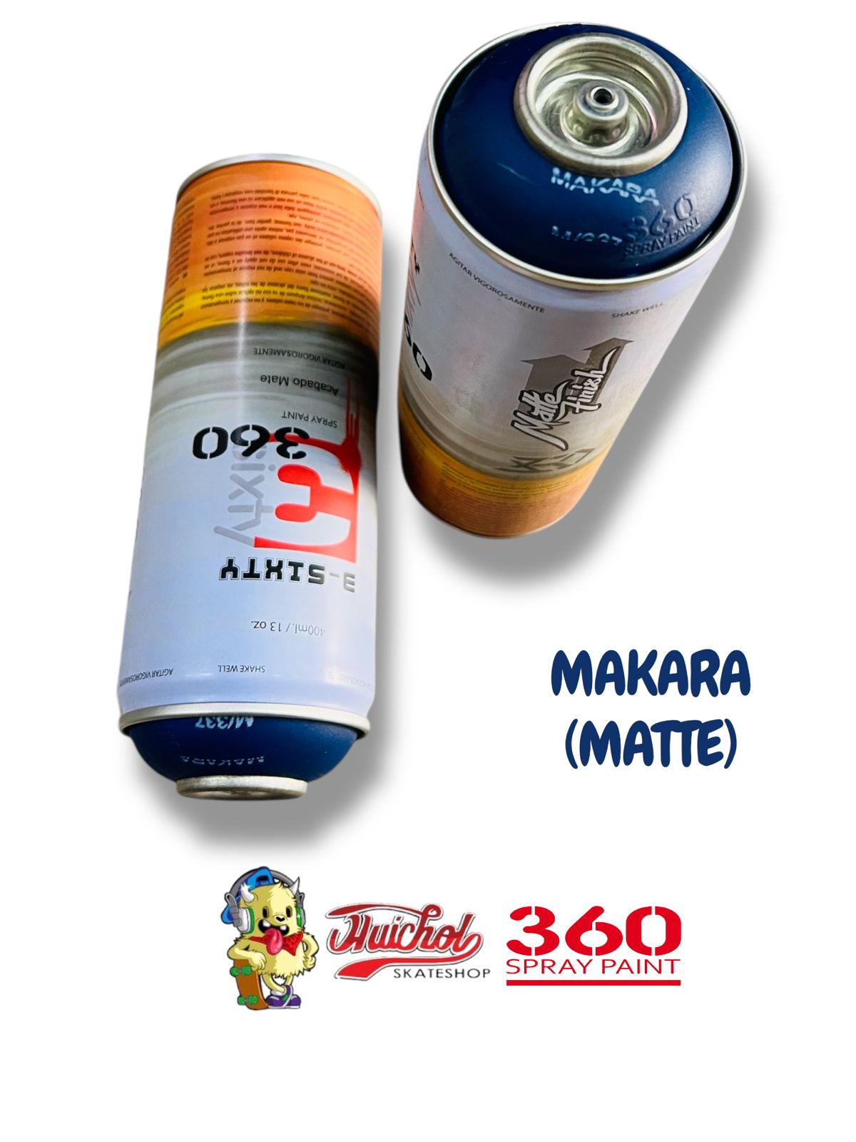La 360 Spray Paint Makara Mate 400ml destaca por su azul oscuro elegante y versátil, ideal para fondos, sombras y contrastes en composiciones de graffiti o diseño urbano.