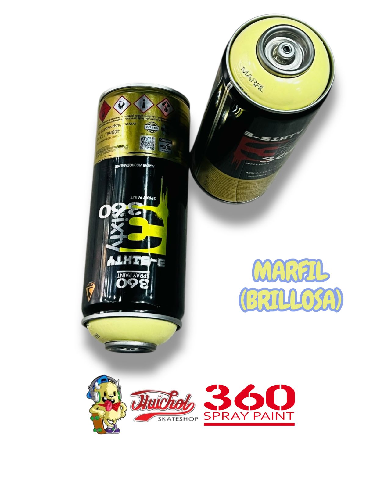 El 360 Spray Paint Color Marfil Brillosa 400ml ofrece un tono claro con acabado brillante que proporciona luminosidad y elegancia en cualquier superficie. Su fórmula garantiza excelente adherencia y uniformidad.