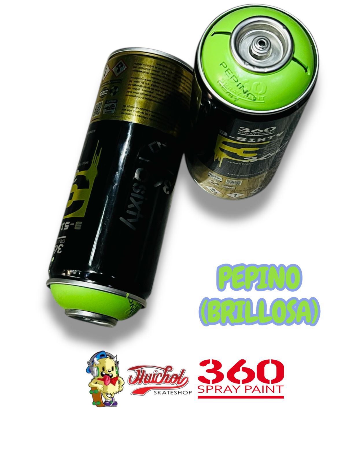 La 360 Spray Paint Color Pepino Brillosa 400ml ofrece un verde intenso tipo neón con acabado brillante que resalta en murales, grafiti y personalización urbana. Ideal para contrastes llamativos y detalles que necesitan máxima visibilidad.