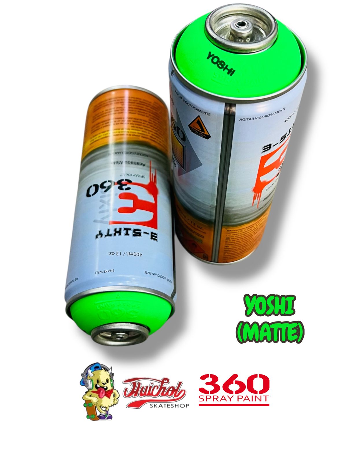 La 360 Spray Paint Yoshi Mate 400ml presenta un verde vibrante con acabado mate profesional. Perfecta para piezas de graffiti, rellenos y detalles llamativos.
