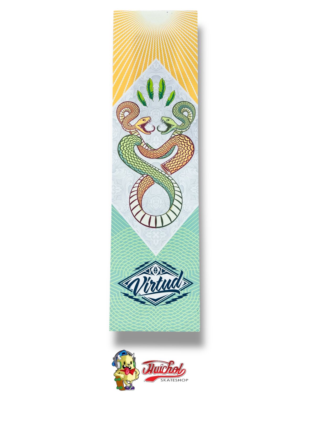 Palabras clave: lija para skate, grip tape Virtud, lija diseño serpientes, lija profesional skateboard.