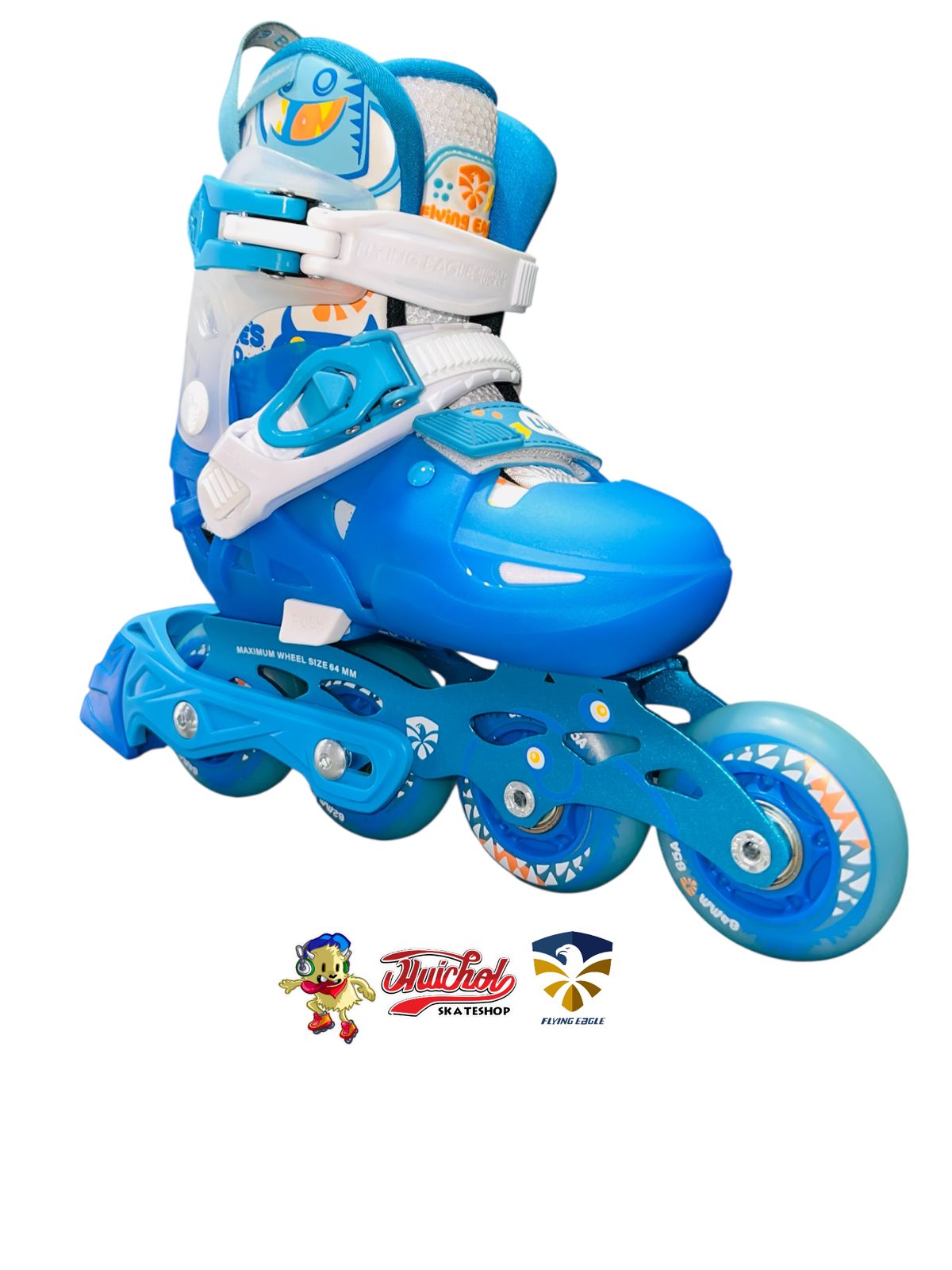Patines Flying Eagle L6 Lumos Azul, ideales para niños y principiantes. Con ajuste de tallas, ruedas resistentes y diseño llamativo que combina seguridad y diversión.