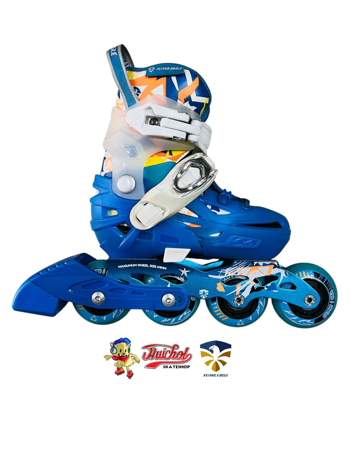 Los patines Flying Eagle S&S azul y blanco son la elección perfecta para niños que quieren iniciarse en el patinaje con estilo y seguridad. Su diseño llamativo combina un botín azul con detalles blancos y gráficos modernos, ofreciendo no solo comodidad sino también un look vibrante.