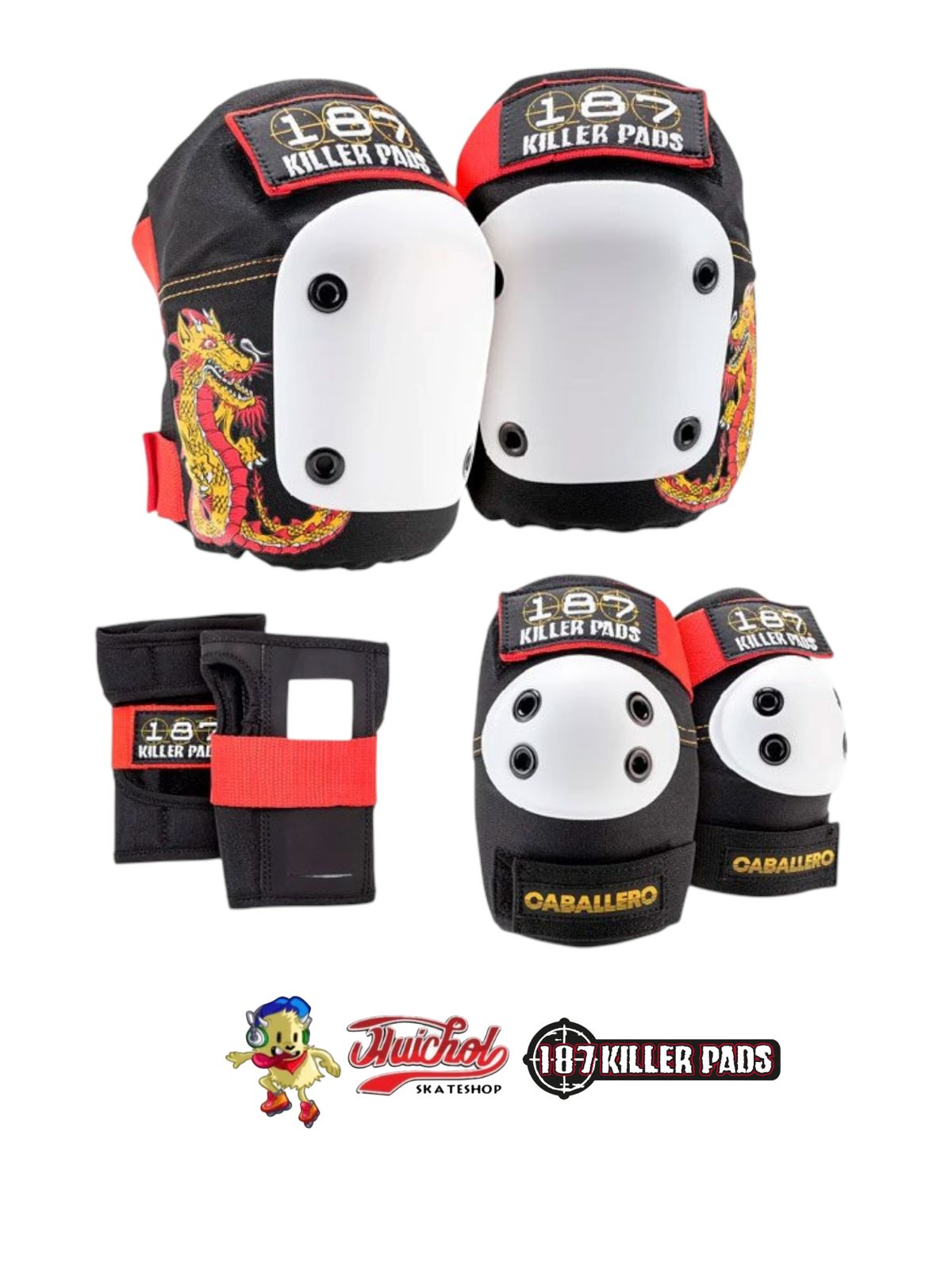 El set de protecciones 187 Killer Pads Caballero Dragon combina protección de nivel profesional con un diseño icónico inspirado en el estilo clásico del skate.