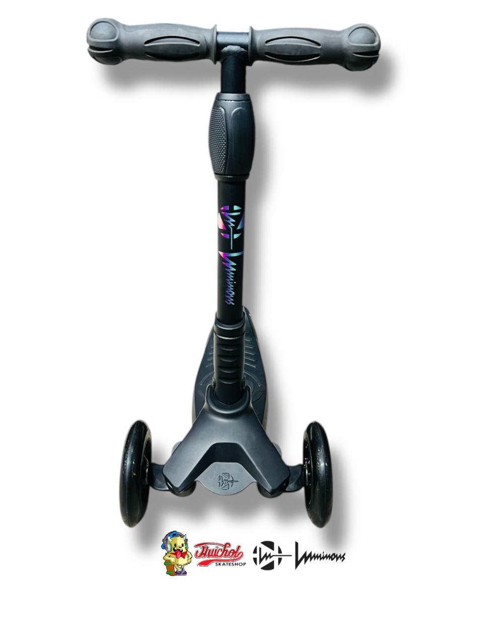 Scooter Luminous negro con diseño minimalista y estructura reforzada. Ideal para niños y jóvenes que buscan estilo, seguridad y diversión sobre ruedas. Altura ajustable y ruedas con excelente agarre.