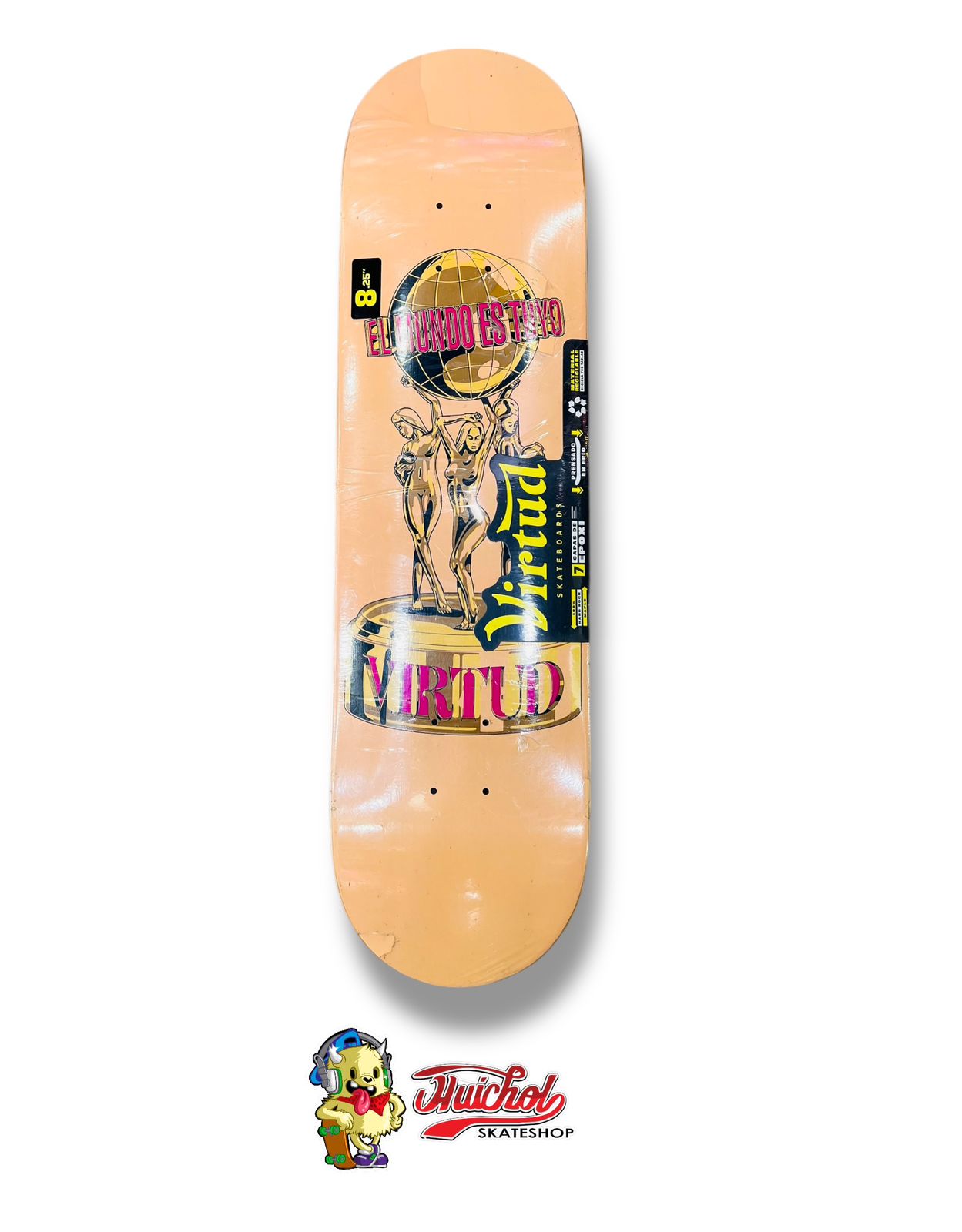 La tabla de skate Virtud “El Mundo es Tuyo” 8.25” es una declaración de actitud y confianza sobre ruedas. Su diseño artístico rinde homenaje al poder de la mente y la ambición, representando el espíritu del skate moderno: libre, desafiante y con propósito. Fabricada en madera de maple canadiense de 7 capas, ofrece una resistencia superior y un pop explosivo que responde en cada truco, ideal para street y park.