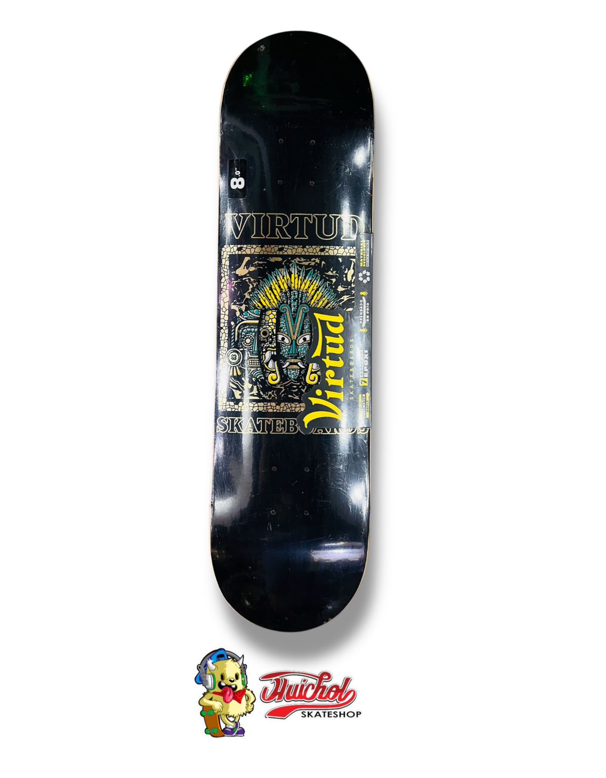 La Tabla Virtud Negro 8.0″ rinde homenaje a las raĆces y la mĆstica ancestral del skateboarding urbano. Con un arte en tonos dorados y detalles tribales sobre fondo negro, esta tabla no solo destaca en el parque, sino que transmite carĆ”cter y autenticidad.