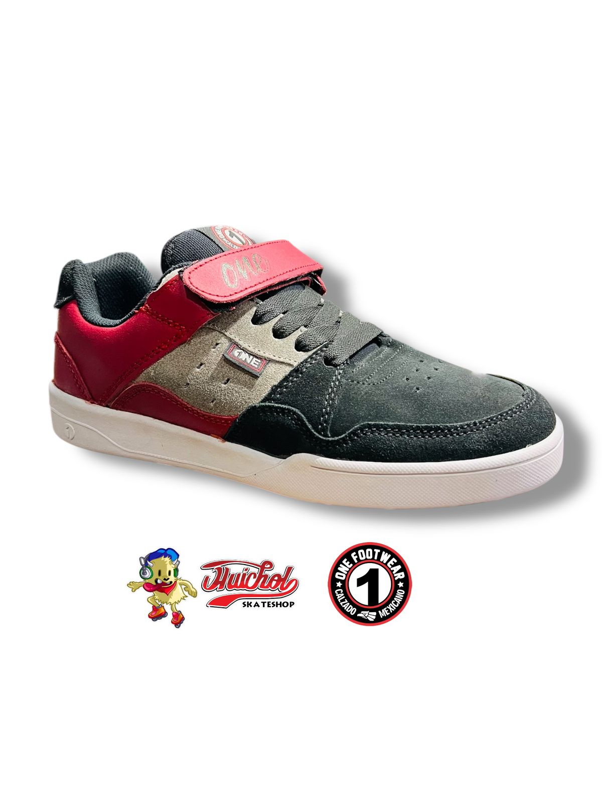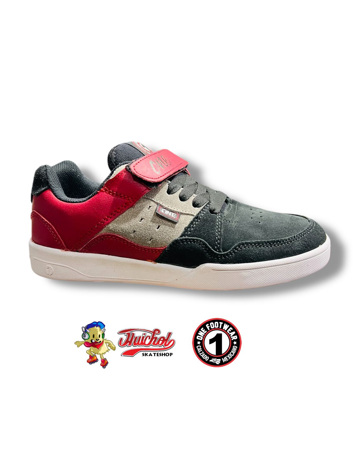 Explota tu estilo con los Tenis One Footwear Stamina 3 Flye, una fusión perfecta entre diseño urbano, funcionalidad skate y calidad 100% mexicana 🇲🇽. Este modelo destaca por su combinación de colores negro, gris y rojo, y por incluir una correa de velcro frontal que no solo aporta firmeza al ajuste, también suma un toque retro y original que resalta.