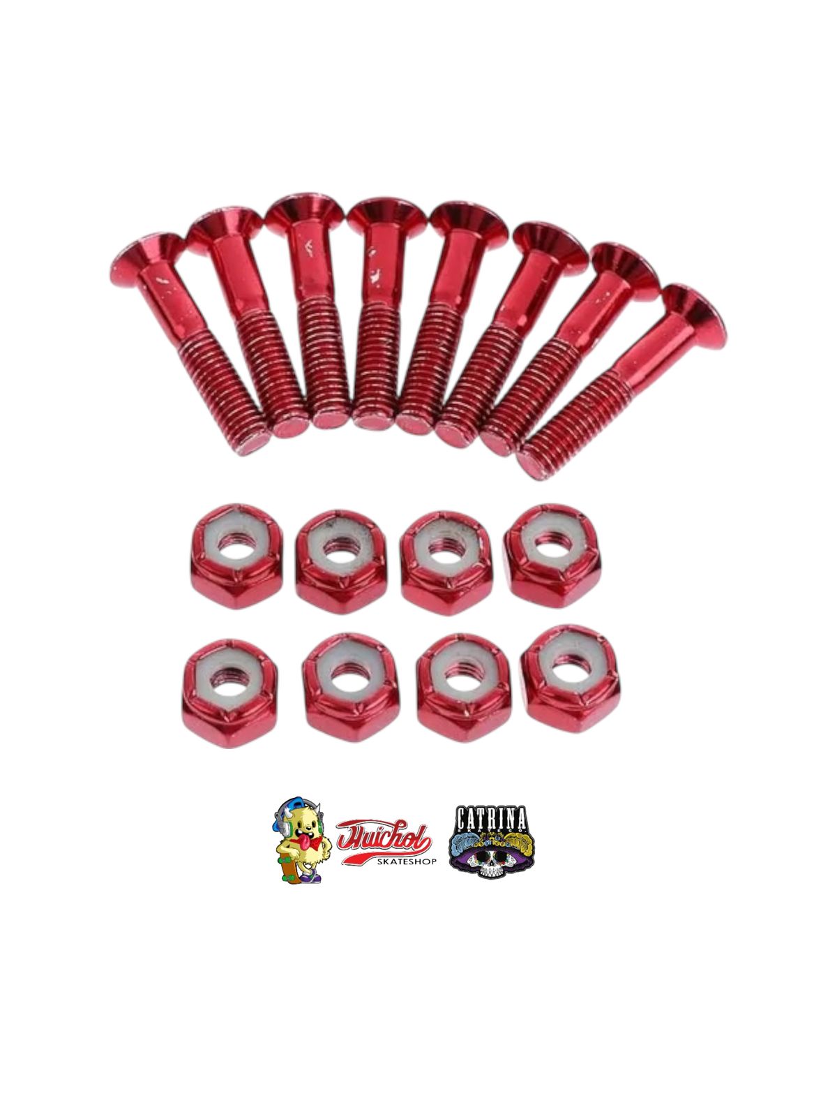 Los Tornillos Catrina Co Rojos combinan durabilidad, precisión y diseño mexicano en un set de alta calidad pensado para skaters exigentes. Fabricados en acero reforzado con recubrimiento anodizado rojo, garantizan una conexión firme entre la tabla y los trucks, reduciendo el desgaste por vibración y manteniendo tu equipo seguro en cada sesión.