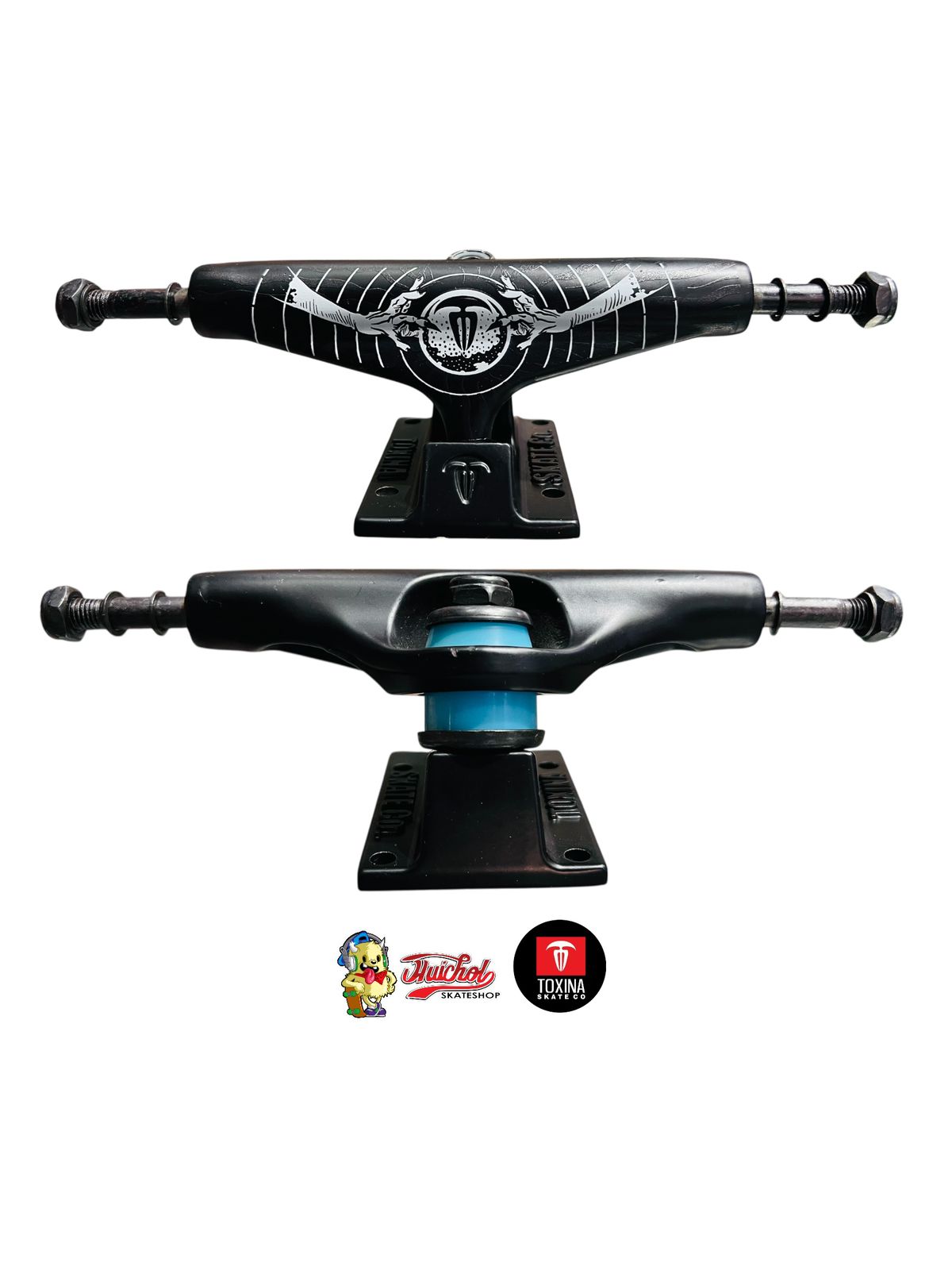 Unos trucks que transmiten oscuridad, fuerza y actitud, pensados para riders que buscan un estilo alternativo con la calidad del skate nacional.