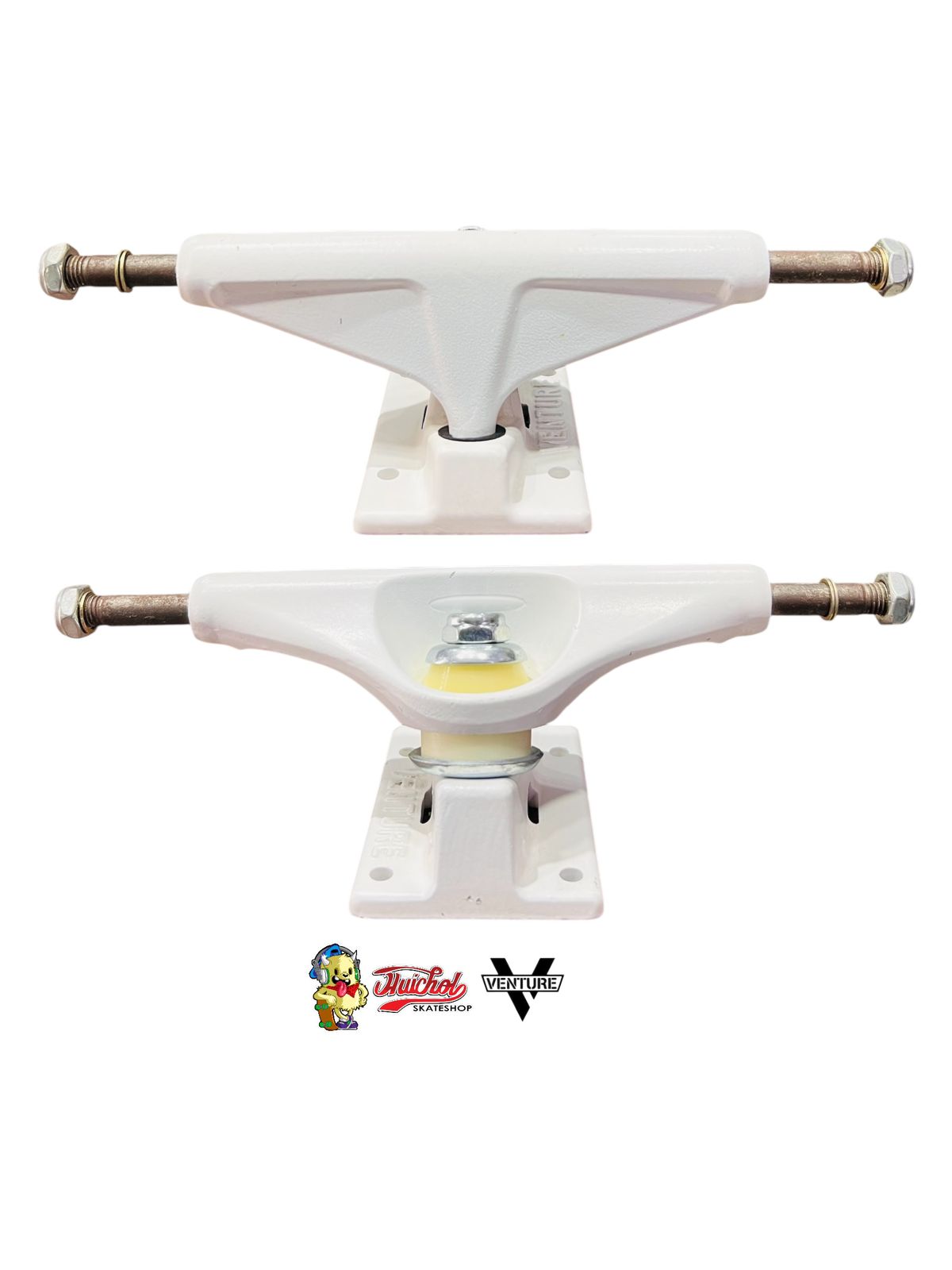 Los Venture Team White Lighting II 139mm son la definición de durabilidad y estilo minimalista. Diseñados en un acabado blanco impecable, estos trucks ofrecen un look limpio que se adapta perfectamente a cualquier combinación de tabla y ruedas.